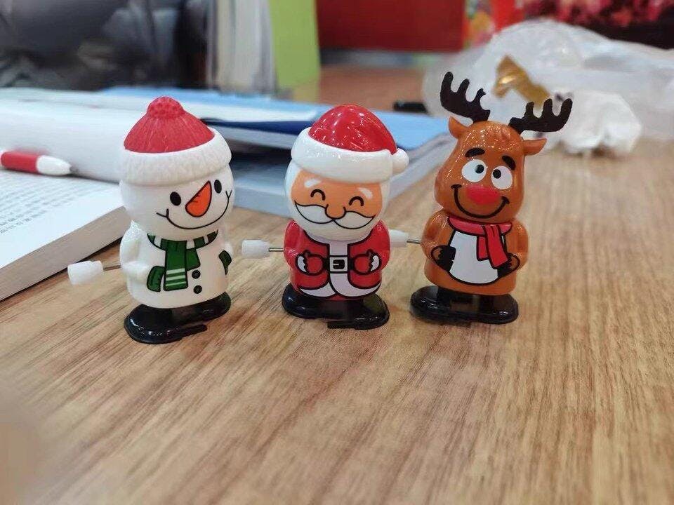 These adorable wind-up walking toys are the perfect Christmas gift for young children! Designed specifically for nursery and kindergarten settings, these charming rotating figures of Santa Claus and snowmen bring festive magic to any Christmas Eve celebration. Simply wind them up and watch as they toddle across tables or shelves with a delightful rotating motion. Made from child-safe materials with smooth edges, these decorative toys combine entertainment with safety. Their bright colors and cheerful designs will capture children's attention while developing their curiosity. Ideal as stocking stuffers, classroom rewards, or decorative pieces for holiday parties.