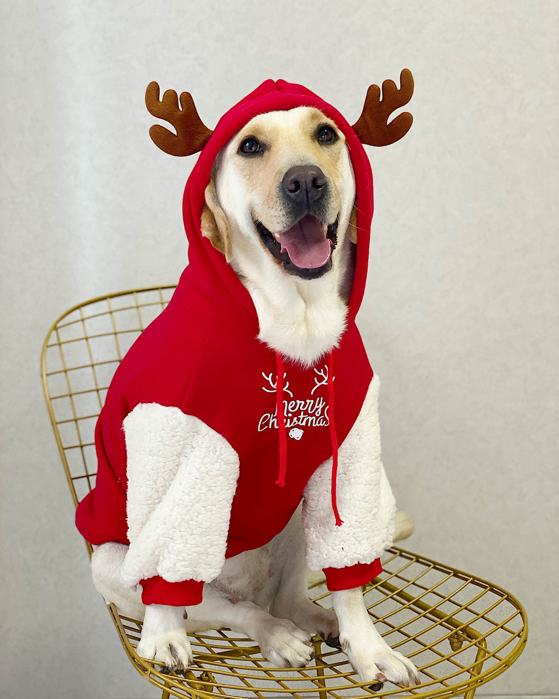 Keep your large furry friend warm and stylish this winter with our Christmas Deer Hoodie! Made from ultra-soft, breathable pure cotton and featuring a plush fleece lining, this adorable sweater provides ultimate comfort and warmth during chilly days. The fun reindeer print and festive design are perfect for holiday photos, parties, or casual walks. Designed specifically for large breeds, it offers a comfortable fit without restricting movement. Easy to put on and take off, it’s a must-have for the season!