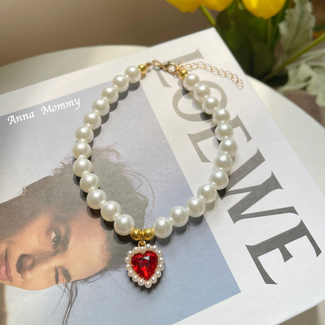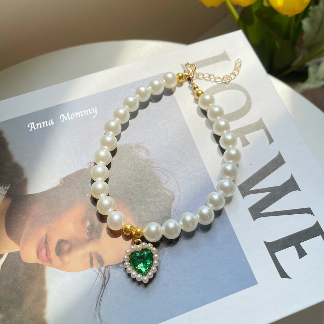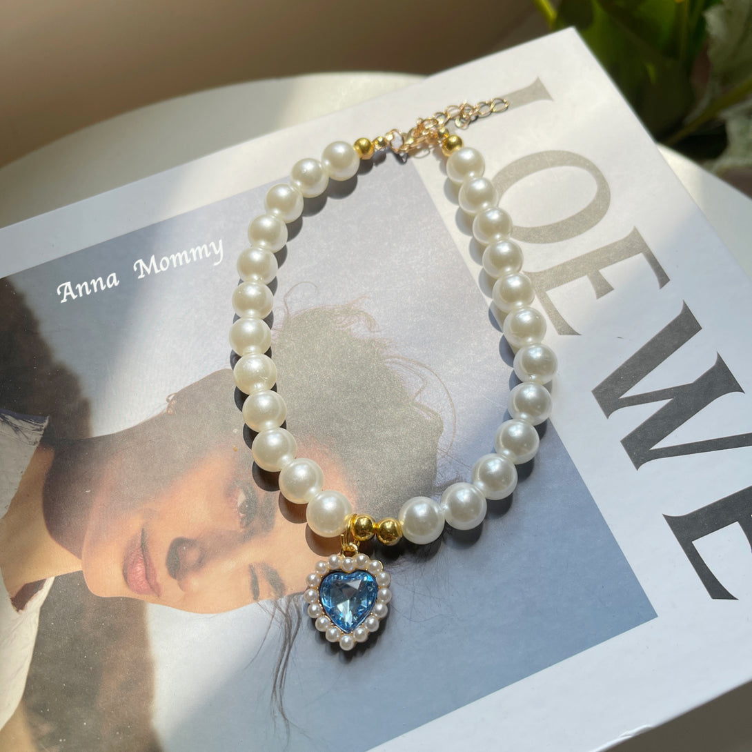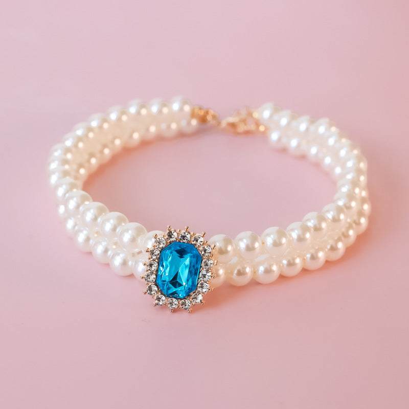 Layer Pearl & Crystal Pet Collar - Vintage Elegance for Cats and Small Dogs