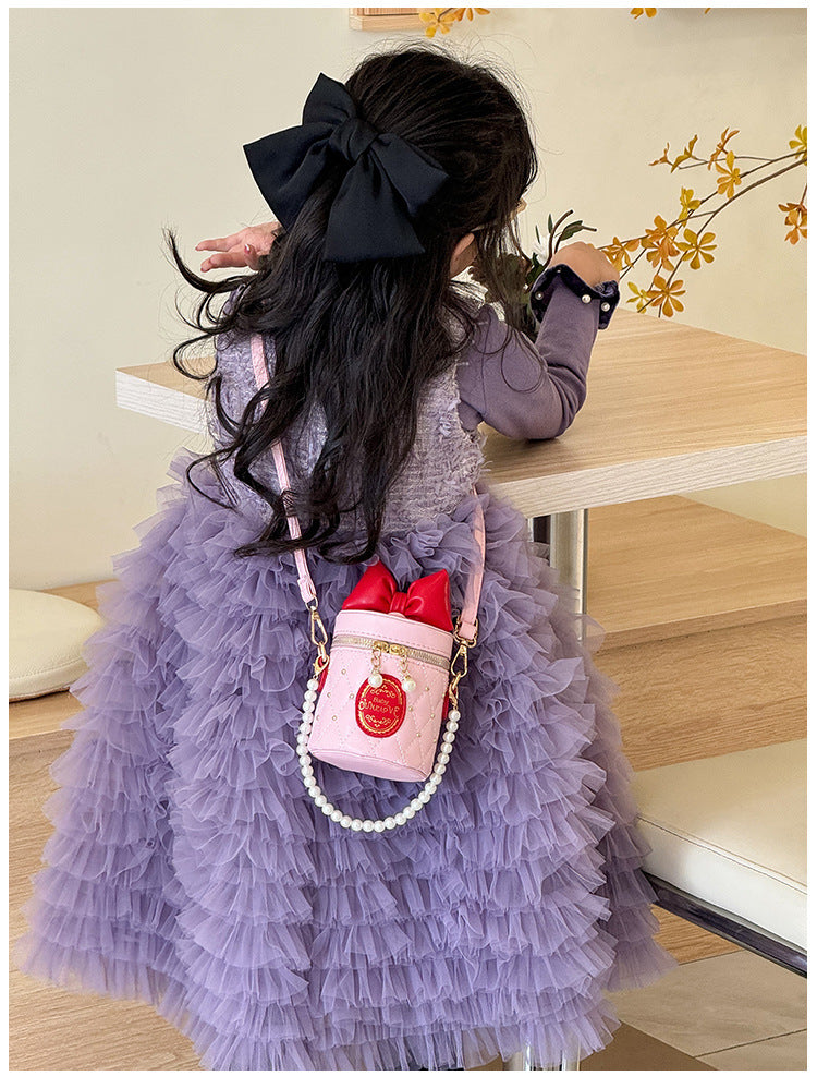 Adorably chic and perfectly practical, this new bucket bag is designed to capture hearts. The playful bow accent and lustrous pearl-adorned chain strap create a delightful blend of sweet innocence and sophisticated style. Its compact yet spacious bucket silhouette offers effortless daily carry, while the adjustable chain allows you to wear it as a single-shoulder bag or a shorter crossbody.